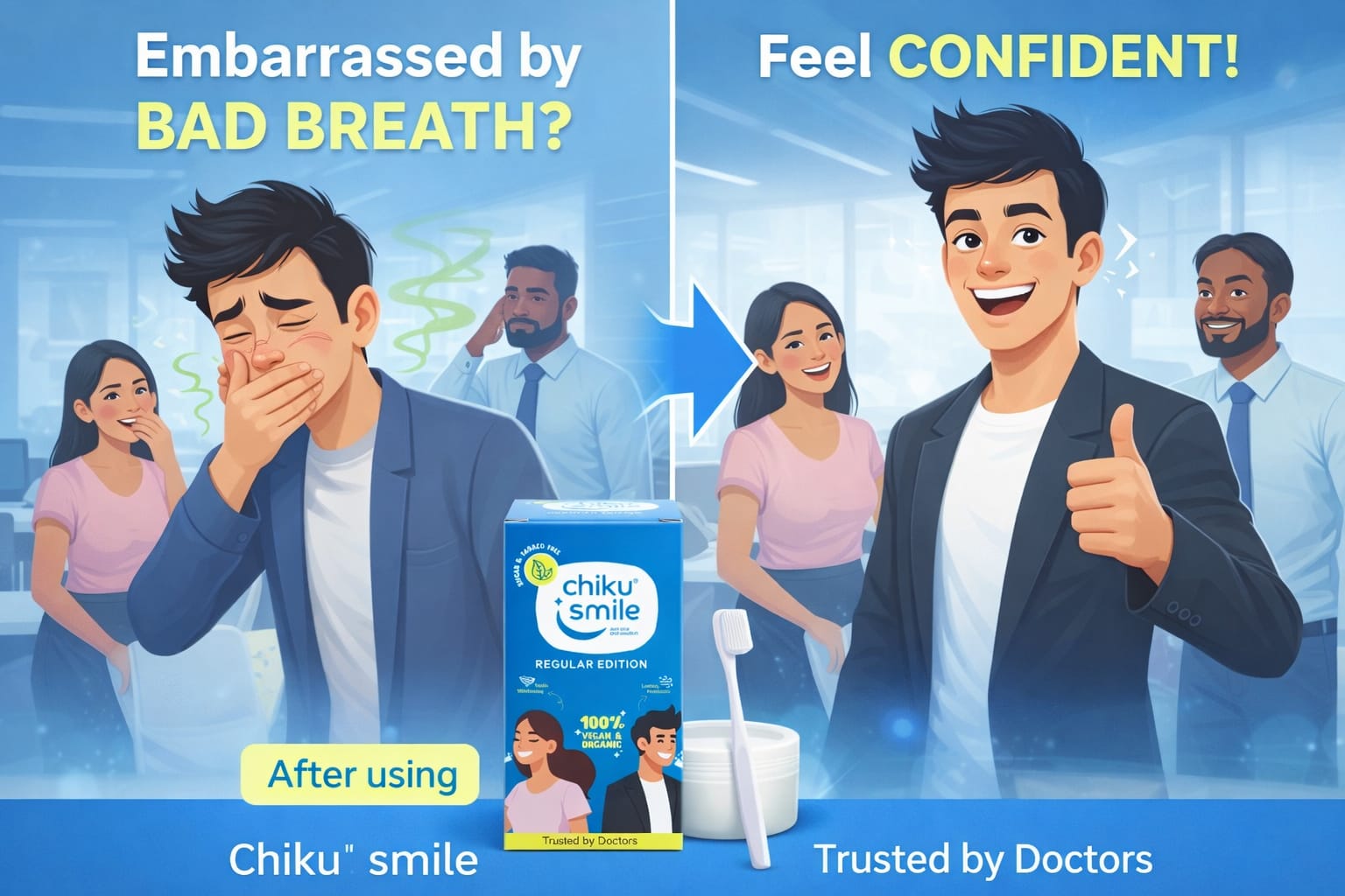 "I used to rely on chewing gum and chemical mouth fresheners for bad breath at the office. Chiku Smile keeps my breath naturally fresh all day!"